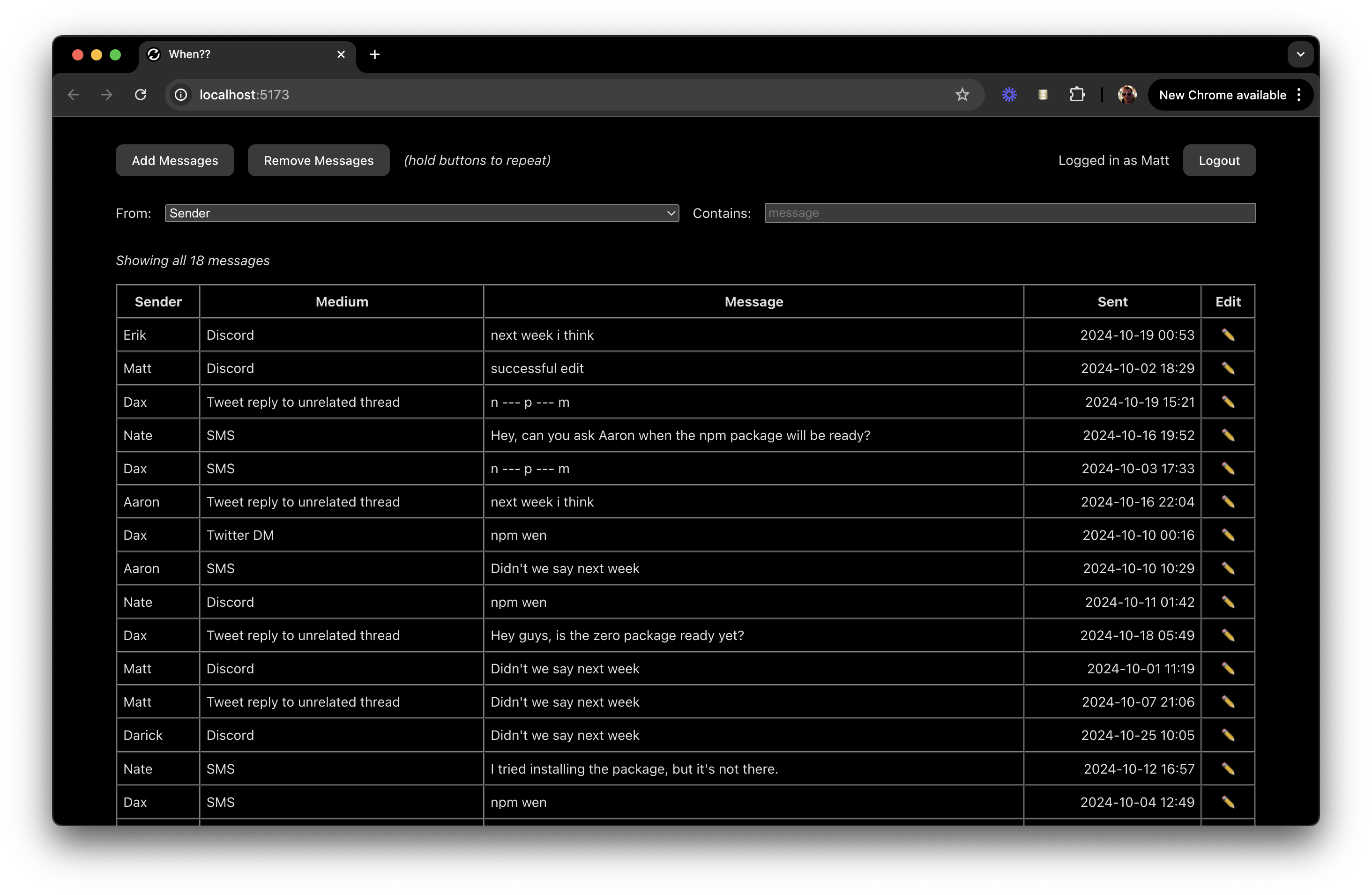 **Stack:** Vite/Hono/React **Source:** [https://github.com/rocicorp/hello-zero](https://github.com/rocicorp/hello-zero)**Docs:** [Quickstart](https://zero.rocicorp.dev/docs/quickstart)**Features:** Instant reads and writes, realtime updates.